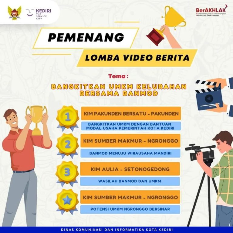 Wahh, pasti ini nih yang paling ditunggu-tunggu oleh kalian. Akhirnya setelah melalui proses yang panjang dan penilaian yang sengit, ini dia nih, para pemenang dari lomba video berita KIM bertemakan ‘Bangkitkan UMKM Kelurahan Bersama Banmod’ ya Nda